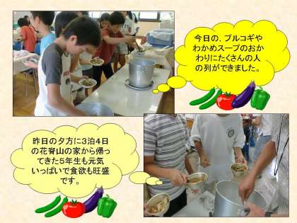 ピーマンなどの苦味のある野菜は,はじめは苦手な児童もいますが,何度も食べているうちにおいしさがわかってきます。何度も経験することで食べられるようになってくるのですね。夏には,夏野菜をしっかり食べましょう。