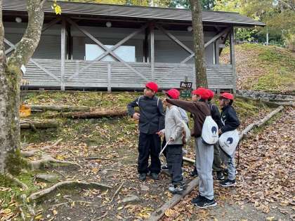 午後の活動の後半には、「樹木博士フォトラマラリー」をしました。ヒントカードを頼りに、示された場所にある樹木の名前を集めました。班で協力しながら、所内を巡りました。