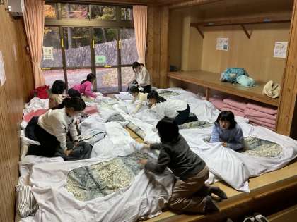 荷物を整理した後、シーツをひいて、寝具の準備をしました。次は入浴です。