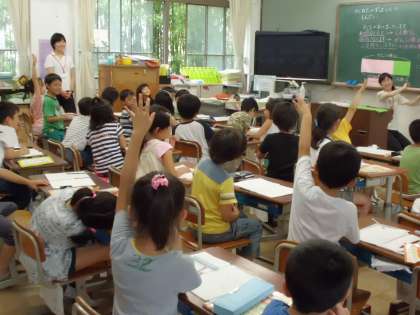テープ図を使って、クラスのみんなに式を立てたわけを説明しようと頑張っていました。2年生では発表の仕方(話し方、聞き方)がしっかりしていました。