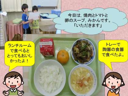 ランチルームでの給食は,教室とはまた違っ雰囲気で,子どもたちはとっても楽しみにしています。