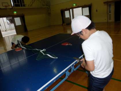 今日も暑い中、自分たちで用具を準備し、ラリーの練習をしたり試合形式の練習をしたりしました。