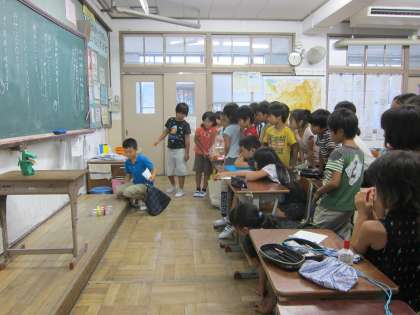 夏休みの間にそれぞれ興味のあるテーマで自由研究に取り組みました。旅行先の都道府県について色々調べたり,工作をつくったり,料理をつくってまとめたり,昆虫や植物を観察したり・・・どれも力作ぞろいですので,各学級で発表をすることになりました。みんな友達の研究に興味津々です。