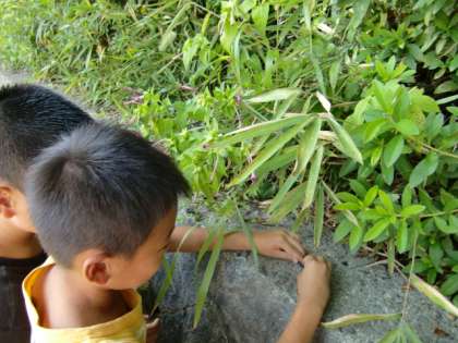 校庭に出ると、虫や花、木の実などがたくさん見つかります。