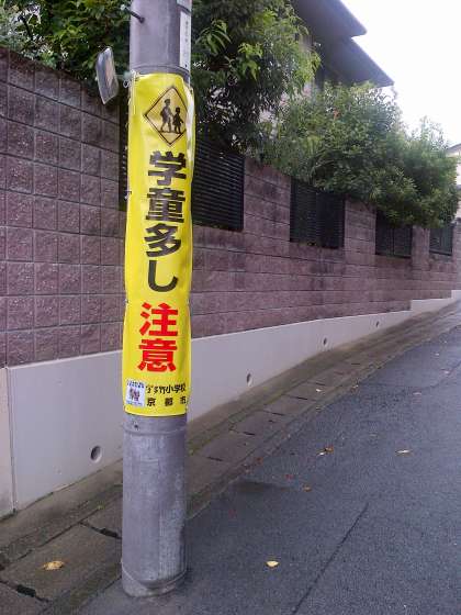万が一のことを考え,少しでも安全に子どもたちが登下校できるように,電柱に目立つ色でドライバーに注意を呼びかける幕を設置しました。