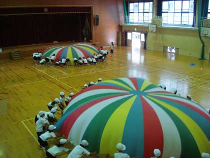 5年生ではおおぞら学級と一緒にバルーンの演技を行います。