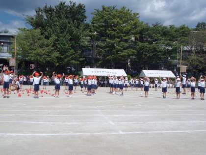 ポケモンの音楽に合わせたかわいいダンスをご披露しました。腕の振りを揃え元気に踊りました。玉入れは 1回戦赤43個 白47個 2回戦赤42個 白37個 合計赤85個 白84個 惜しくも1個差で赤が勝ちました。どちらのチームもがんばりました。後片付けもしっかりできました。応援ありがとうございました。