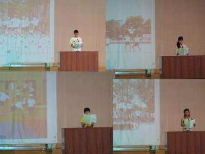 代表で発表した4名の作文は,ハードル走や組体操の練習期間のがんばったこと,悩んだこと,大変だったこと,そして終わった後のことなどを心の動きの様子がよく伝わるものでした。