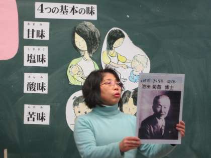 でも,その4つの味以外の味を発見した人がいました。5つめの味は,「旨味」。発見したのは池田菊苗教授で,世界で初めてのことです。だから,「うまみ」というのは世界共通語になっているそうです。その味が,日本のだしの味です。