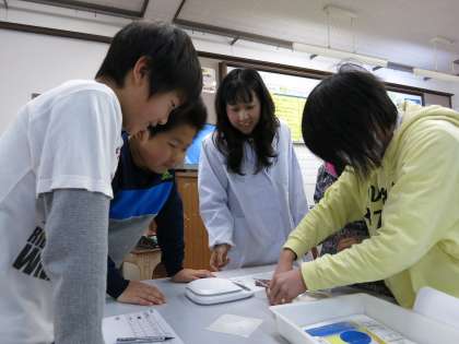 理科の学習でもののとけ方を学習しています。今日の実験は50ミリリットルの水に食塩はどこまでとけるのか?というめあてで学習しました。子どもたちの予想は,「限界はある,そんなにたくさんとけないと思う。」という子どもと「少しずつ混ぜながら食塩を入れていけば,どこまでもとけると思う。」という2つに分かれました。実験が始まると子どもたちは水の量や食塩の重さを真剣に量り,結果がどうなるのか楽しそうに実験をしていました。結果は,どの班も16グラム〜18グラムぐらいまでしかとけませんでした。「どうして限界があるのかなあ。」「もっととかす方法はないのかなあ。」と次の実験がまた楽しみになりました。