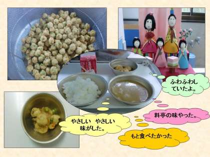 「3人で,宇多野校500人のがんもどきを作るなんてすごいと思いました。」