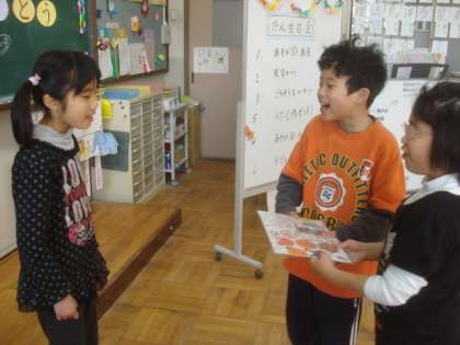 プレゼントは,絵とお祝いの言葉がかかれたオリジナルパズルです。「おめでとう」と渡すと,「ありがとう」と言って受け取ることができました。