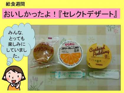 給食週間の最後の日に「セレクトデザート」を食べました。