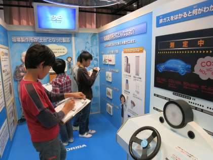 殿堂の方には,京都のいろいろな会社のブースがあり,どんな人がどんなモノをつくってきたのか,その歴史も学ぶことができました。工房では,タッチパネルを作りました。出来上がると,LDEのランプが光る仕組みになっています。子どもたちもその仕組みを知ることができ「こうなっていたのかあ!」と驚いていました。京都の中には伝統文化だけでなく,世界で活躍する最先端の会社がたくさんあることを初めて知った子どもたちがたくさんいたようです。夢をもってものづくりを続けてきた人に子どもたちも夢や希望を感じていました。