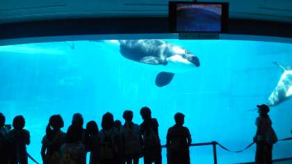 イルカショーの他に,白イルカのベルーガ,シャチなど見所たくさんです。優雅に泳ぐ姿が美しいです。