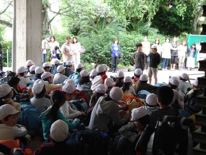 本日6月2日より5日までの3泊4日,5年生は左京区の花背山の家に宿泊学習に出かけます。今まで準備を重ね,いよいよ出発の日を迎えました。出発式では児童代表,担任,学校長より挨拶があり,今日からの活動を有意義なものにするための話や決意が述べられました。
