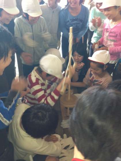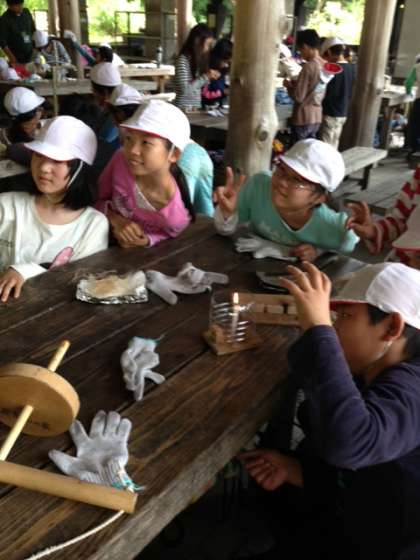 午後の活動は火おこし体験です。今日のテーマは「協力」。なかなかつかなかった火でしたが,グループみんなの力を合わせて全グループつきました。あきらめそうになっても励まし合い,応援しあう姿か見られました。