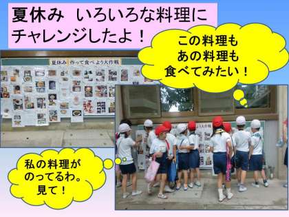 料理を作ることは、子どもたちにとって素晴らしい体験です。いろいろな力をつけることができます。とても暑い夏休みで,子どもたちと一緒に料理を作るのは大変だったと思いますが,子どもたちの真剣な眼差しや笑顔がとてもよかったです。