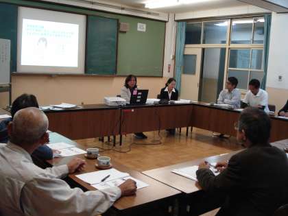平成25年度学校運営協議会企画推進委員会が16日に行われました。日頃子どもたちが安心安全や楽しい行事,授業の補助などでお世話になっている諸団体の代表の方々にお集まりいただきました。学校からは学校教育目標はじめ今年度の前期の取組や後期重点を置いて指導していくことを学校長が説明しました。続いて教務主任より前期学校評価の内容と結果やその分析をご説明しました。その途中やその後に様々なご意見をいただきました。