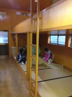 おはようございます。2日目の朝です。昨夜は早々に寝静まり、ぐっすり眠れたようです。洗面し、ふとんをたたんで、これから朝のつどい、学校紹介です。