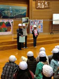 学校紹介の3人は、写真を見せながらはきはきと話し、宇多野の自慢を紹介しました。