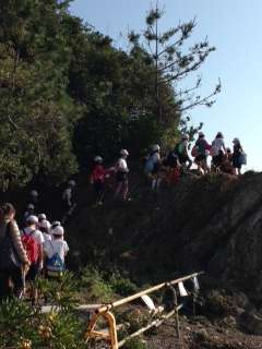 午前の活動は磯観察です。みさきの家から歩いて宮崎浜に移動しました。マリンランドの職員さんが、潮の干潮やヒトデの観察の仕方について教えてくださいました。