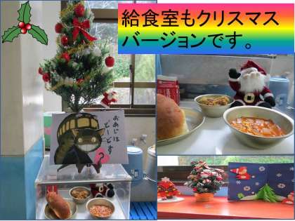 給食室もクリスマスバージョンの飾りつけになっています。