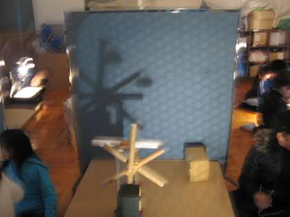 子どもたちは,「影をつくる」という慣れない活動に,毎日四苦八苦していますが,「プチプチシートに光を当てるときれいな模様になるよ」や「針金を使うと影が浮いているように見えるよ」など,たくさんの新しい発見をしながら取り組んでいます。