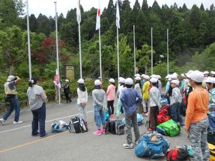 山の家に着きました。みんな元気に昼食を食べ、今ロッジに荷物を持って入り、荷物整理をしています。