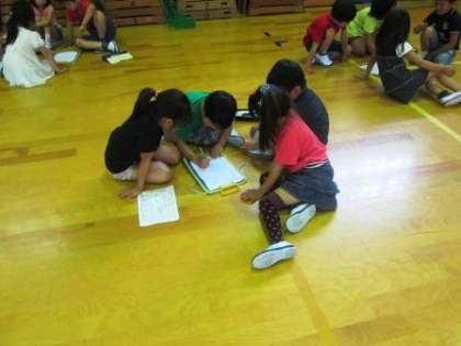 あしたは生活科の校外学習で植物園へ行く予定です。きょうは,なかよしグループで集まって,グループの約束とお弁当のあとのあそびを話しあいました。