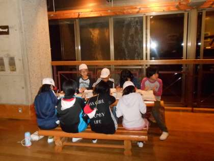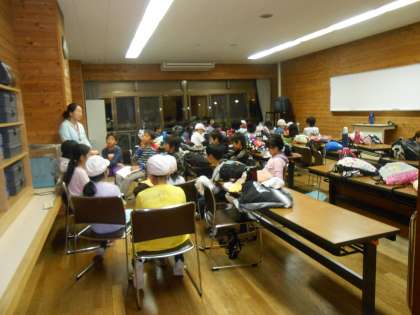 昨日のナイトハイクは、自然の音に耳をすまそうということで、風の音・木々の音・蛙など動物の鳴き声や羽音を聞きながらナイトハイクに取り組みました。ふりかえりでも一日の反省をしっかりできていました。今日の登山に備えてみんな早く寝るように話がありまいsた。