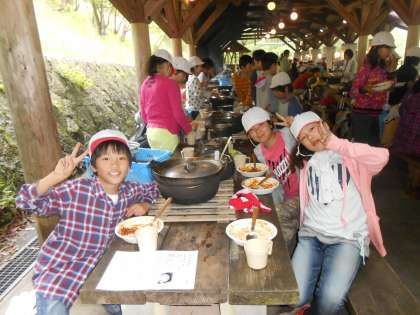 この昼食は野外炊事パーティーなので、友達の作ったものなども味見していました。この4日間、自分のことはもちろん、友達と協力し合い、友達と励ましあい、いろいろなことに挑戦した4日間だったと思います。この挑戦したことが自信となり、これからの生活にいかしてくれたらと思います。おうちの方もお手紙をありがとうございました。キャンプファイヤーが終わったあと、担任から手紙を受け取り、キャンプファイヤー場で座ってみんな読んでいました。どこそこから子どもたちの泣き出す声が聞こえ、号泣しておりました。家族の暖かさをじーんと感じたのだと思います。本当にありがとうございました。