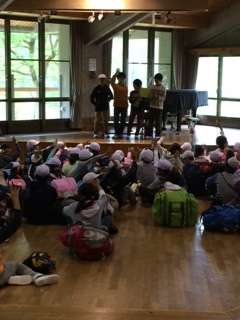 退所式でお世話になった花背山の家の方々にお礼を言っていよいよ山の家を出発します。この3泊4日でたくさんの思い出ができました。おうちの方からのお手紙も子どもたちは感動していました。子どもたちは,思い出をいっぱいいっぱい心野中に詰め込んでおうちへ帰ります。ご家庭でいっぱいお話を聞いてあげてくださいね。