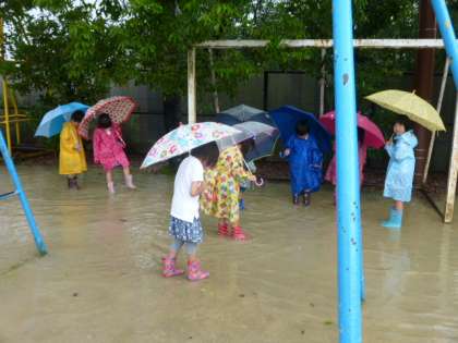 子どもたちは,運動場に出て雨の日の様子を感じ取っていました。