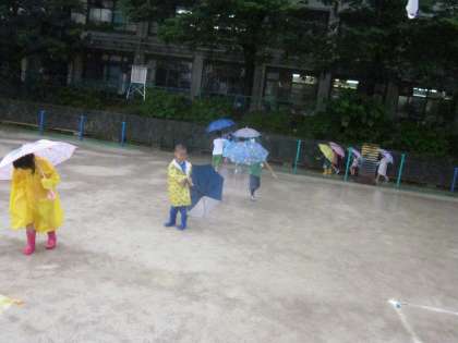 生活科の季節の学習で雨の日探検をしました。