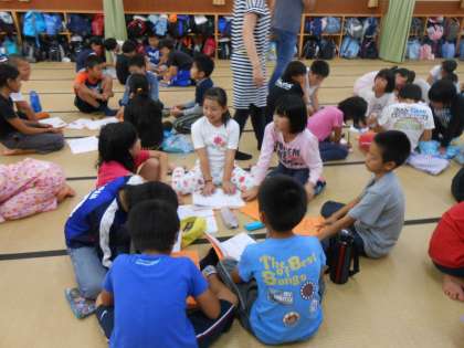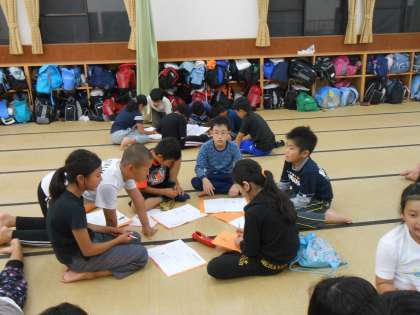 今日一日の活動をふりかえりました。係りごとに集まったり、班で集まってふりかえりをしました。みんな、元気に過ごしています。