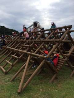 芝生ランドにあるアスレチックに挑戦です。
