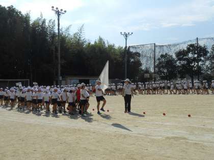 9月20日の運動会にむけて全校練習がありました。今日は入退場の練習や開会式の練習をしました。暑い中、がんばっていましたね。