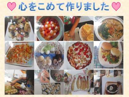 お母さんと作った人,兄弟で作った人,おばあちゃんと作った人,1人で頑張って作った人など色々な料理にチャレンジしてくれました。