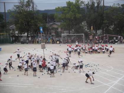 1年生は,妖怪ウォッチの曲にあわせてかわいらしいダンスを披露した後,玉入れをして,元気な声で玉を数えました。