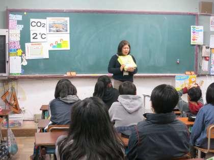 今日は「エコライフチャレンジ」の2回目の学習です。冬休みに取り組んだエコについての診断書をもらい,子どもたちも意識して取り組んだ結果がよかったことに満足そうでした。今日は,その冬休みの取組の中から,取り組めたもの・取り組めなかったものをグループでまとめました。その結果から,エコ目標を作り発表しました。「ご飯を残さずに食べよう。」という目標を発表したグループは早速,給食時間におかわりをしていました。これからもエコな生活を続けていけるよう,ぜひお家でも話し合ってみてください。
