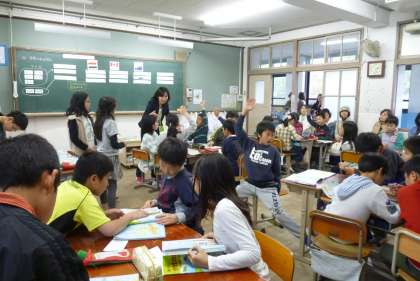 5年生は,地球儀や地図を使って国当てクイズを作っていました。国の特徴をとらえて,グループでスリーヒントクイズを作り,友達に答えてもらっていました。6年生は資料を見ながら縄文時代と弥生時代の様子を比べ,ちがいを考える学習をしていました。