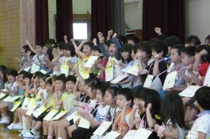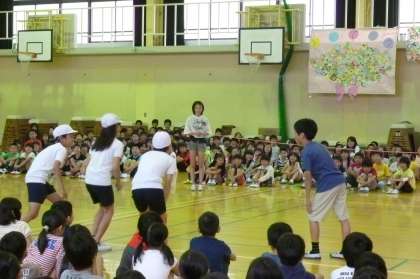 1年生は,はじめての歌声,はじめてのリコーダー,はじめての全校ゲーム…で目をまんまるにして,お兄さんお姉さんを見入っていました。だんだんと緊張もとけて,最後はにっこり笑顔で退場していきました。