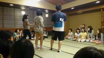 男子が入っている間に女子は集まってレクリエーション。