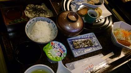 おはようございます。これから朝食です。名古屋名物きしめんが入っています。みんな元気です。