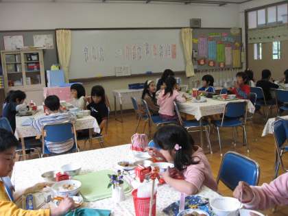 4月の給食が始まって約1ヶ月経ちました。今まで教室で食べていましたが、
