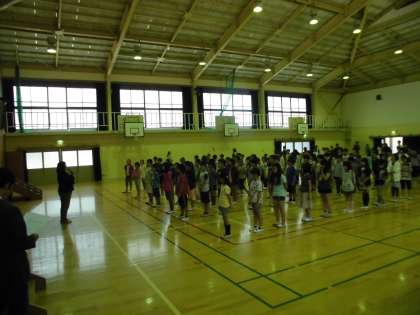 大勢の子どもたちが体育館に集まりました。立つ姿勢,座って話を聞く態度,立派でした。やる気に満ち満ちていました。どの部でも,全員が1年間,最後まで一生懸命に活動してほしいですね。