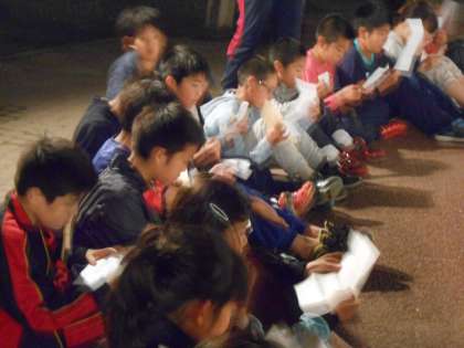 最後の最後におうちの方からの手紙をもらい、しんみり読んでいました。ありがとうございました。いよいよ今日、帰ります。最後のぼうけんの森もクライミングも楽しみにしています。このままけがもなく、楽しんで帰りたいと思います。そろそろシーツを持ってくる頃です。