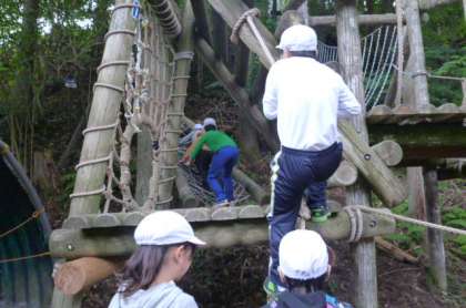 冒険の森のアスレチック、雨が降らないことを祈っています。
