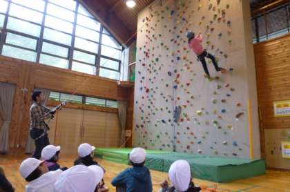 いよいよ高い方を登って行きます。藤井先生・飯田先生に命綱を託し、みんな安心して登っています。